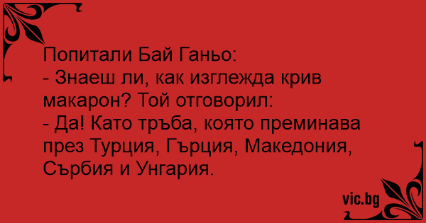 - Знаеш ли, как изглежда крив макарон? Той отговорил: