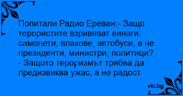 Попитали Радио Ереван:- Защо терористите взривяват винаги: самолети, влакове, автобуси, а не президенти, министри, политици?