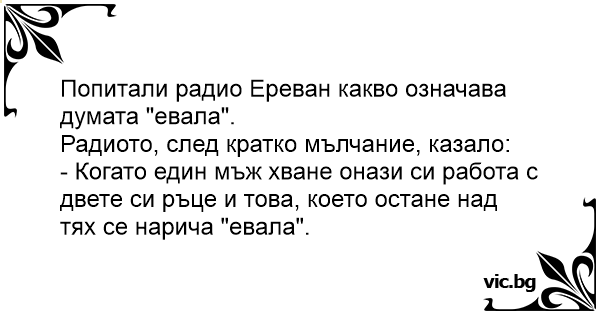 - Когато един мъж хване онази си работа с двете си ръце и това, което остане над тях се нарича "евала".