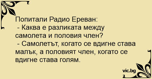 - Самолетът, когато се вдигне става малък, а половият члeн, когато се вдигне става голям.