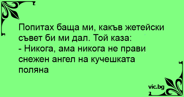 - Никога, ама никога не прави снежен ангел на кучешката поляна
