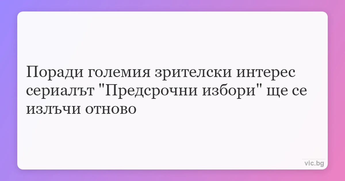 Поради големия зрителски интерес сериалът "Предсрочни избори" ще се излъчи отново