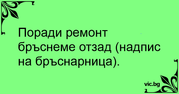 Поради ремонт бръснеме отзад (надпис на бръснарница).