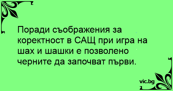 Поради съображения за коректност в САЩ при игра на шах и шашки е позволено черните да започват първи.