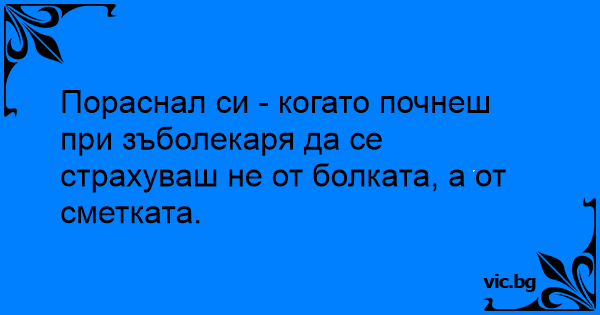 Пораснал си - когато почнеш при зъболекаря да се страхуваш не от болката, а от сметката.