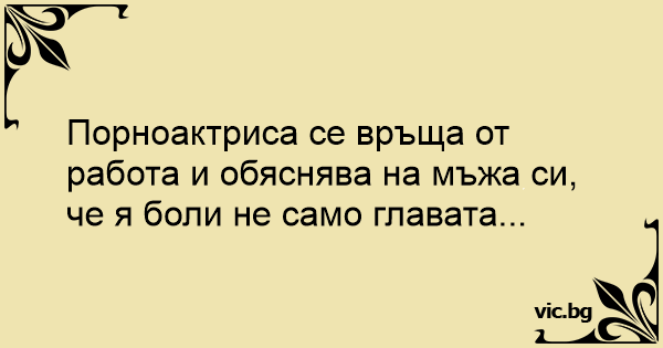 Порноактриса се връща от работа и обяснява на мъжа си, че я боли не само главата...<br />