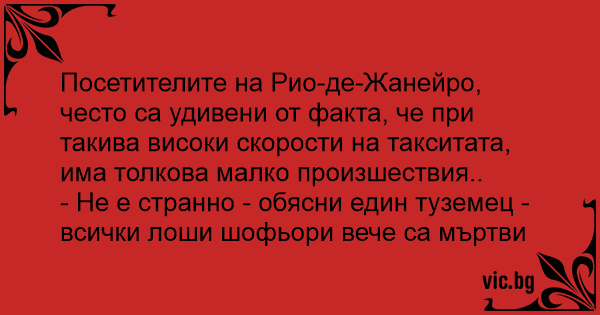 Посетителите на Рио-де-Жанейро, често са удивени от факта, че при такива високи скорости на такситата, има толкова малко произшествия..