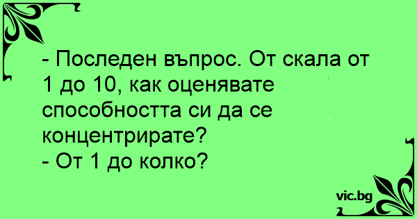 - Последен въпрос. От скала от 1 до 10, как оценявате способността си да се концентрирате?