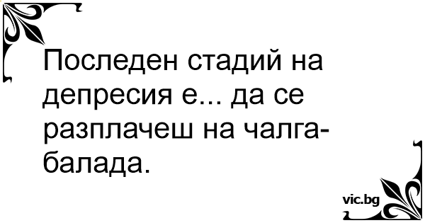 Последен стадий на депресия е... да се разплачеш на чалга-балада.