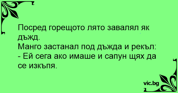 Манго застанал под дъжда и рекъл: