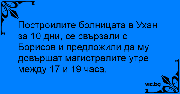 Построилите болницата в Ухан за 10 дни, се свързали с Борисов и предложили да му довършат магистралите утре между 17 и 19 часа.