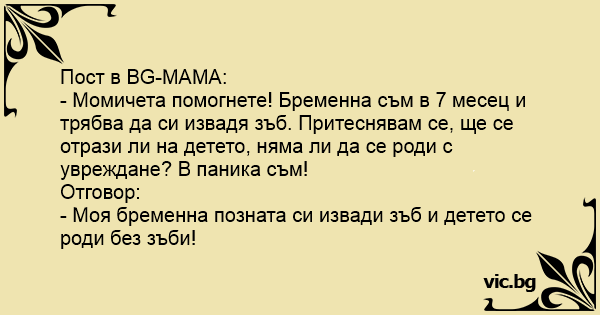 - Моя бременна позната си извади зъб и детето се роди без зъби!