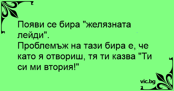 Проблемъж на тази бира е, че като я отвориш, тя ти казва "Ти си ми втория!"