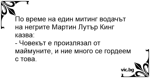 По време на един митинг водачът на негрите Мартин Лутър Кинг казва: