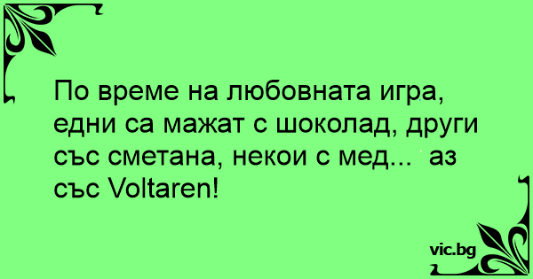 По време на любовната игра, едни са мажат с шоколад, други със сметана, некои с мед... аз със Voltaren!