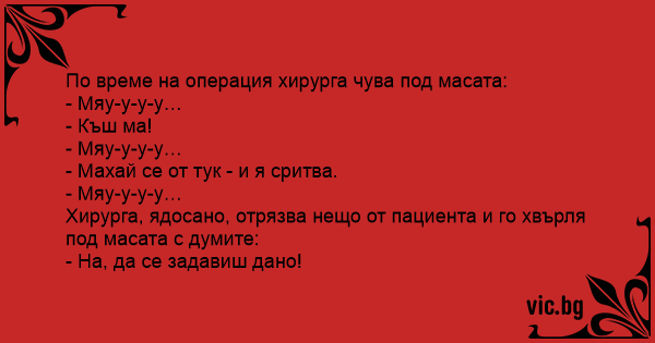 • Вицове от Facebook от нашата страница https://www.facebook.com/www.vic.bg