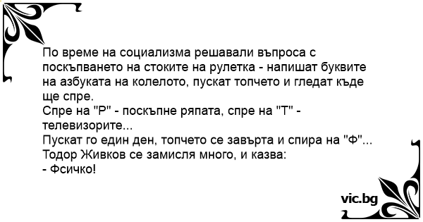 По време на социализма решавали въпроса с поскъпването на стоките на рулетка - напишат буквите на азбуката на колелото, пускат топчето и гледат къде ще спре.