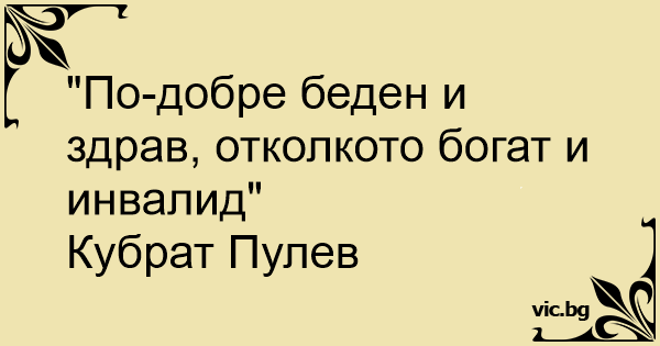 "По-добре беден и здрав, отколкото богат и инвалид"