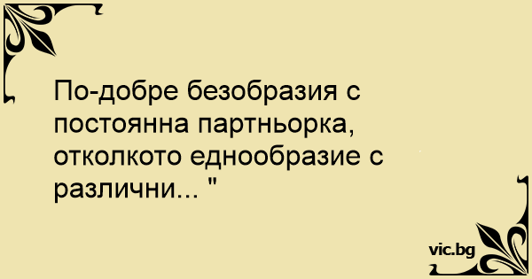 По-добре безобразия с постоянна партньорка, отколкото еднообразие с различни... "