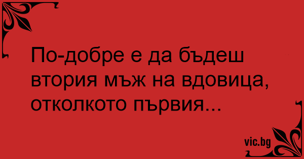 По-добре е да бъдеш втория мъж на вдовица, отколкото първия...