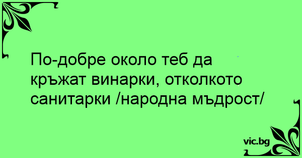 По-добре около теб да кръжат винарки, отколкото санитарки /народна мъдрост/