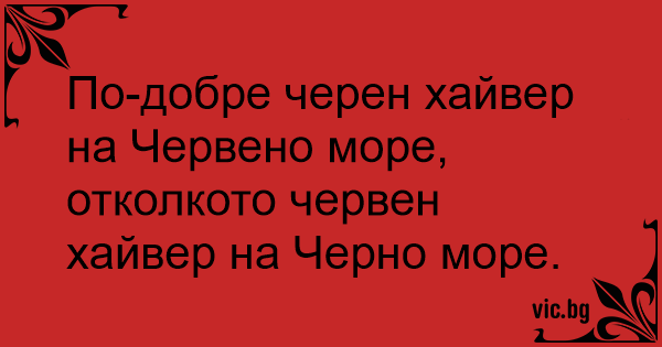 По-добре черен хайвер на Червено море, отколкото червен хайвер на Черно море.