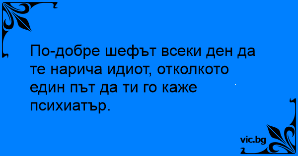По-добре шефът всеки ден да те нарича идиot, отколкото един път да ти го каже психиатър.