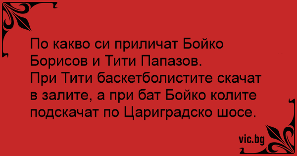 • Вицове от Facebook от нашата страница https://www.facebook.com/www.vic.bg