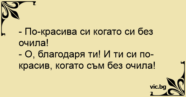 - О, благодаря ти! И ти си по-красив, когато съм без очила!