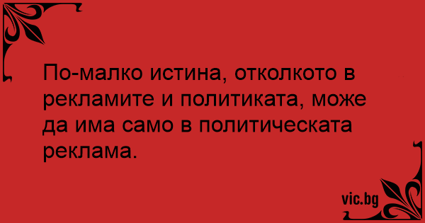 По-малко истина, отколкото в рекламите и политиката, може да има само в политическата реклама.