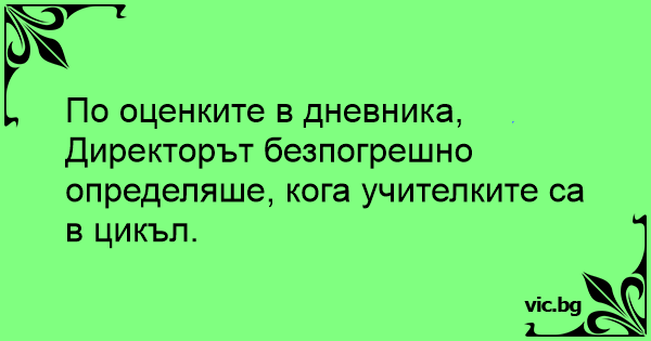 По оценките в дневника, Директорът безпогрешно определяше, кога учителките са в цикъл.