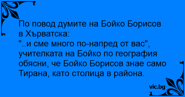 "..и сме много по-напред от вас", учителката на Бойко по география обясни, че Бойко Борисов знае само Тирана, като столица в района.