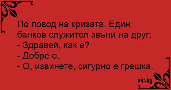 По повод на кризата. Един банков служител звъни на друг:
