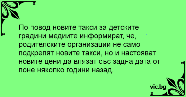 По повод новите такси за детските градини медиите информират, че, родителските организации не само подкрепят новите такси, но и настояват новите цени да влязат със задна дата от поне няколко години назад.