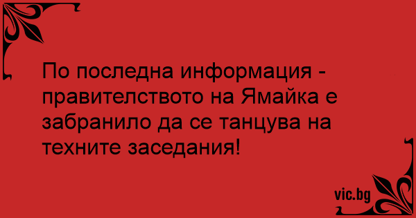 По последна информация - правителството на Ямайка е забранило да се танцува на техните заседания!