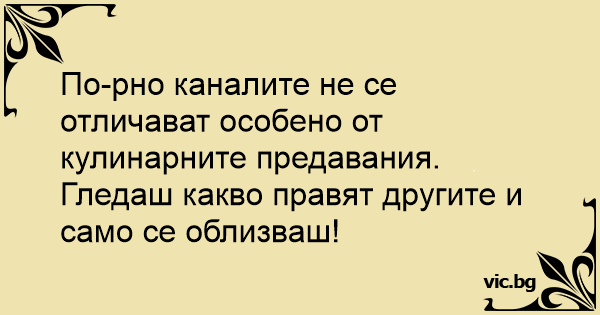 По-рно каналите не се отличават особено от кулинарните предавания. Гледаш какво правят другите и само се облизваш!