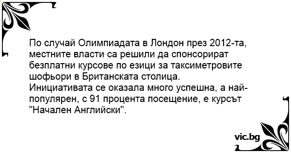 По случай Олимпиадата в Лондон през 2012-та, местните власти са решили да спонсорират безплатни курсове по езици за таксиметровите шофьори в Британската столица.
