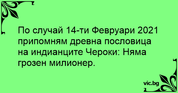 По случай 14-ти Февруари 2021 припомням древна пословица на индианците Чероки: Няма грозен милионер.