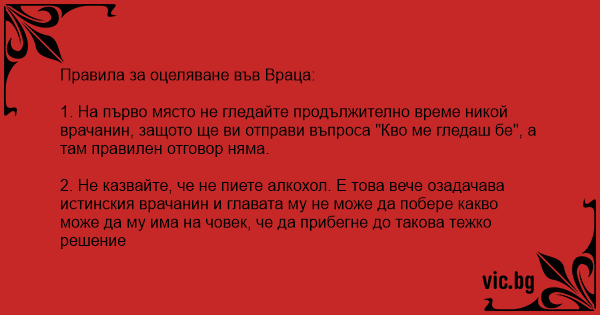 2. Не казвайте, че не пиете алкохол. Е това вече озадачава истинския врачанин и главата му не може да побере какво може да му има на човек, че да прибегне до такова тежко решение