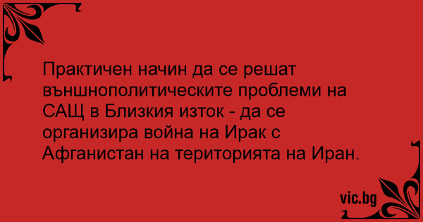 Практичен начин да се решат външнополитическите проблеми на САЩ в Близкия изток - да се организира война на Ирак с Афганистан на територията на Иран.