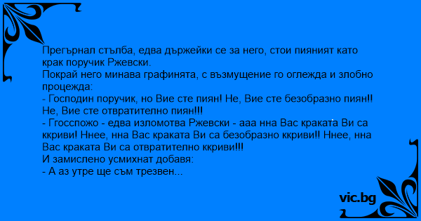 - Господин поручик, но Вие сте пиян! Не, Вие сте безобразно пиян!! Не, Вие сте отвратително пиян!!!
