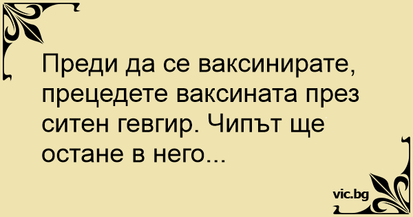 Преди да се ваксинирате, прецедете ваксината през ситен гевгир. Чипът ще остане в него...