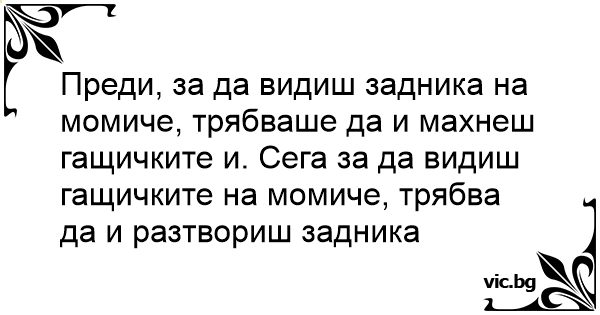 Преди, за да видиш задника на момиче, трябваше да и махнеш гащичките и. Сега за да видиш гащичките на момиче, трябва да и разтвориш задника