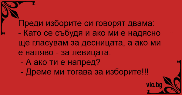 - Като се събудя и ако ми е надясно ще гласувам за десницата, а ако ми е наляво - за левицата.