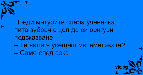 • Вицове от Facebook от нашата страница https://www.facebook.com/www.vic.bg