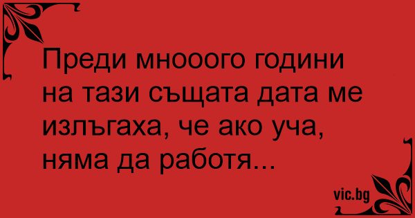 Преди мнооого години на тази същата дата ме излъгаха, че ако уча, няма да работя...