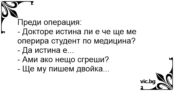 - Докторе истина ли е че ще ме оперира студент по медицина?