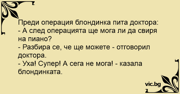 Преди операция блондинка пита доктора: