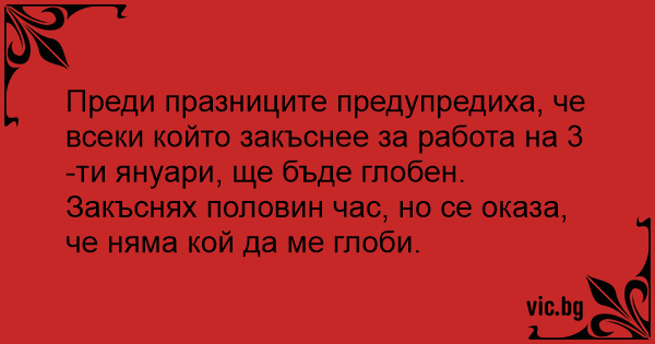 Преди празниците предупредиха, че всеки който закъснее за работа на 3-ти януари, ще бъде глобен.