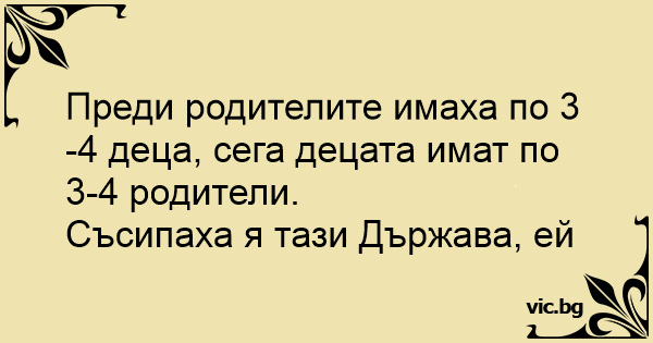 Преди родителите имаха по 3-4 деца, сега децата имат по 3-4 родители.